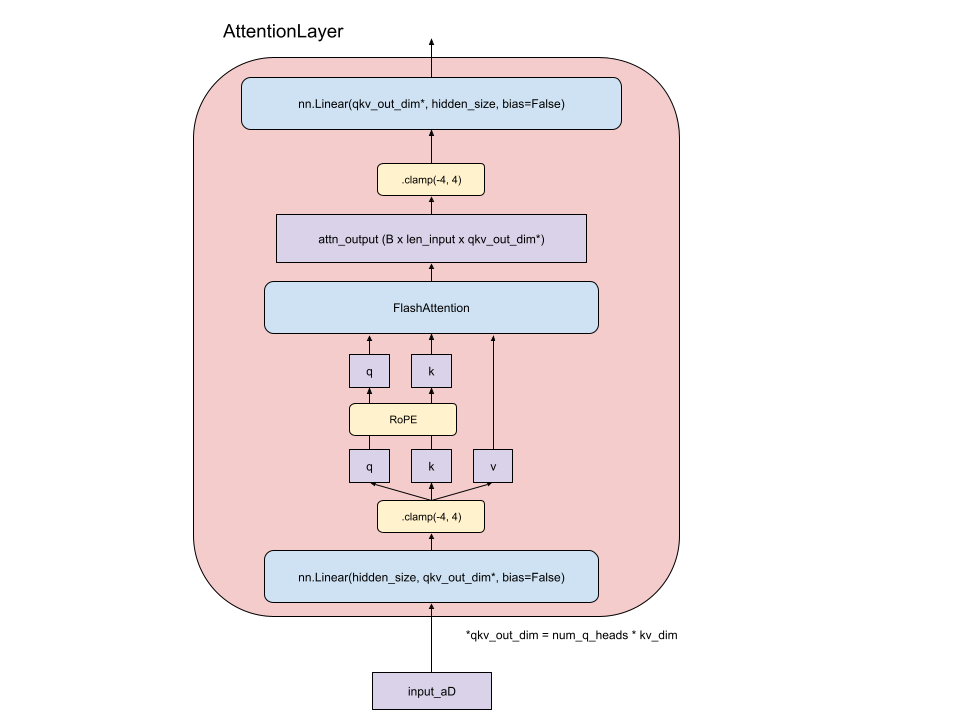 In addition to MQA, Kaiju models share KV cache between adjacent layers with the same attention mechanism. Similar to MQA, this allows for a decrease in the KV cache size required for inference and does not lead to a measurable drop in model accuracy. Generally, 2-3 layers share a KV cache.